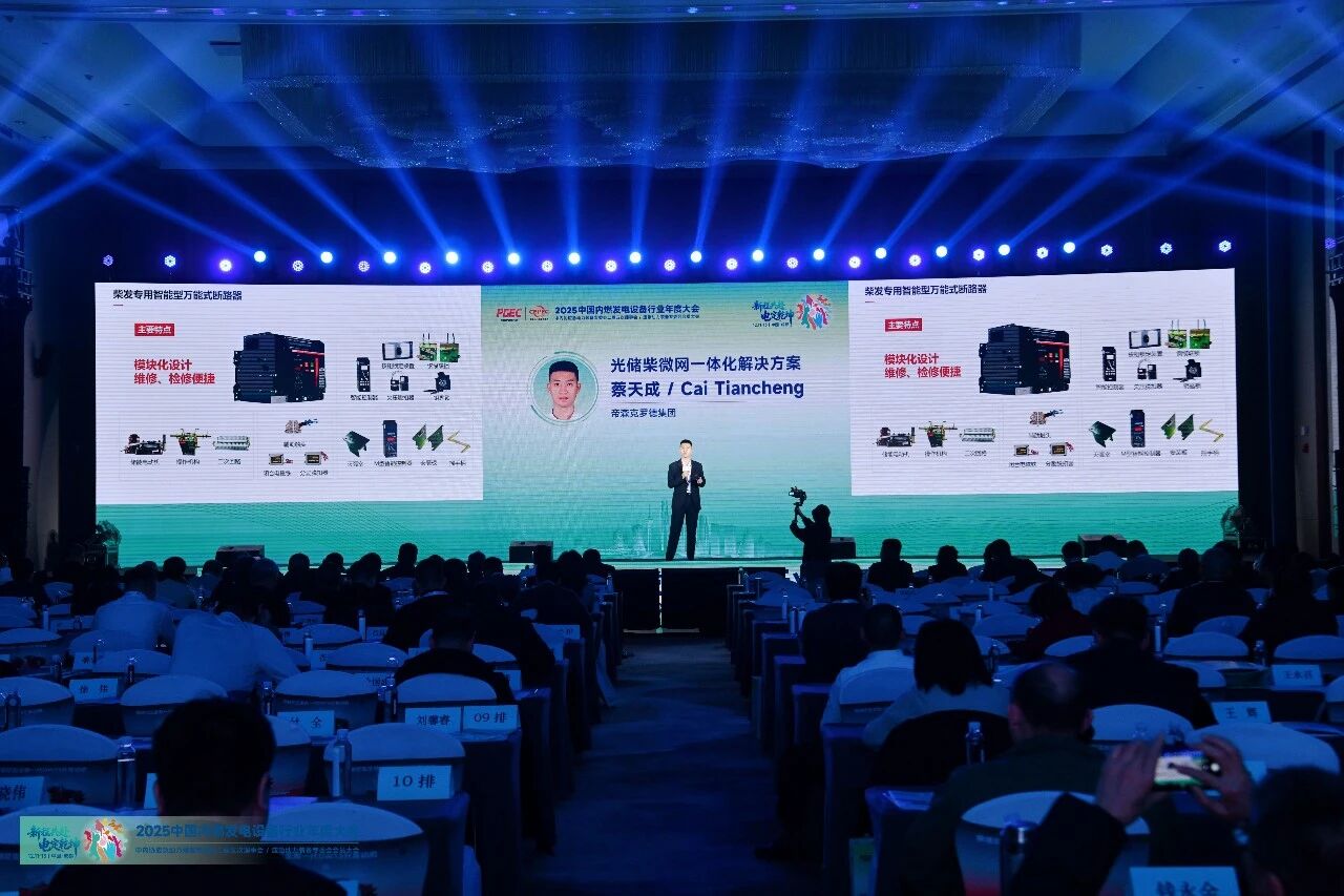 2025年12月12日,由中国内燃机工业协会、中国内燃机工业协会应急动力装备专委会、GPOWER动力展主办的“2025中国内燃发电设备行业年度大会”在四川成都隆重召开,帝森克罗德集团代表 蔡天成 应邀出席会议并作《光储柴微网一体化解决方案》主题分享。以下内容根据现场发言整理,仅供参考。