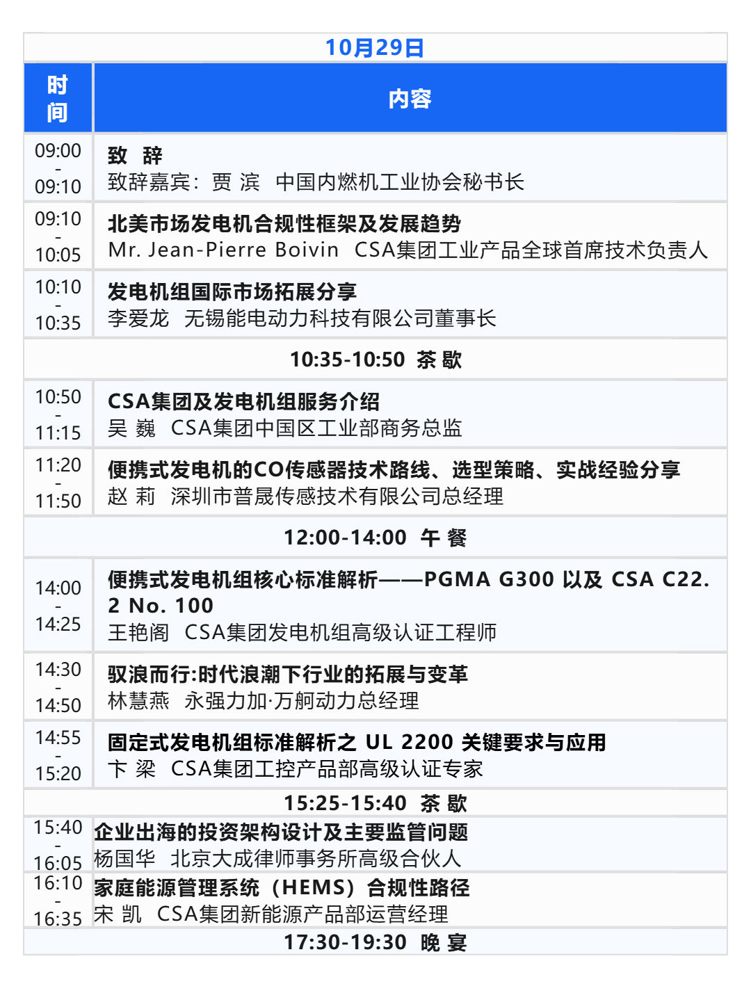 为帮助我国内燃发电机组生产企业深入理解北美等重点国际市场的技术法规、认证要求及发展趋势,提升产品合规性与国际市场竞争力,中国内燃机工业协会定于2025年10月28-30日在上海组织召开“内燃发电机组国际市场与标准研讨会”。本次会议将邀请国际标准制定和认证专家、行业领袖及合规专家深入交流和探讨。